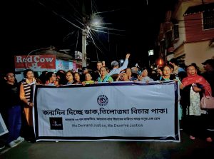 সেই যন্ত্রণা বয়ে বেড়াচ্ছি অভয়ার মা বাবা সহ আমরা সবাই। তাই গতকাল আমরা সেই পথ দিয়ে হাঁটলাম, যে বাড়ির সামনের গলি থেকে ছোট্ট মেয়েটা একদিন মা এর হাত ধরে বেরিয়েছিল, হয়তো স্কুলে যাচ্ছিল বা আইসক্রিম কিনতে। সেই জায়গায় আজ সেই মা মশালে আগুন দিলেন, বুকে তার মেয়ের ছবি আঁকড়ে ধরে। উপস্থিত অগণিত মানুষের চোখে জল, বুকে আগুন। ছাড়বো না তোদের যারা এই মায়ের বুক থেকে কেড়ে নিলি তার সোনাকে। শুরু হলো মশাল মিছিল।