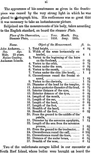 এদের শরীরের সমস্ত মাপজোক করা হয়েছিল। নিচে মাপজোকের নমুনা দেওয়া হল।