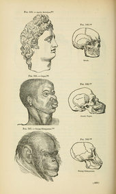(Drawings from Josiah C. Nott and George Gliddon‘s Indigenous races of the earth (1857), which suggested black people ranked between white people and chimpanzees in terms of intelligence। সূত্রঃ উইকিপিডিয়া)