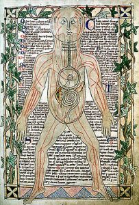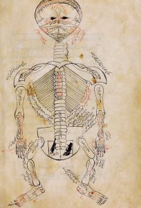 একটু ইতিহাস ঝালিয়ে নিই। মানুষের শরীর এবং এর অঙ্গসংস্থানের তথা অ্যানাটমির জ্ঞান প্রথম স্তরে ছিল অ্যানাটমির পুস্তকের পাঠের জ্ঞান, যা ছিল প্রধানত গ্যালেনের বই থেকে আহরিত এবং গ্যালেন নিজে ছাগল এবং বাঁদরের অতিরিক্ত একটি মনুষ্যদেহেও শবব্যবচ্ছেদ করেননি। সেসময় চিকিৎসাবিজ্ঞানের জগৎ-কে নিয়ন্ত্রণ করছে “হিউমার” বা “ত্রিদোষ তত্ত্ব”-র ধারণা। একে অনেকেই “ফিলসফিক্যাল অ্যানাটমি” তথা দার্শনিক অ্যনাটমি বলে থাকেন। কারণ? প্রকৃত অর্থে মানুষের শরীরের শবব্যবচ্ছেদ এ পর্যায়ে হয়নি। এই স্তরের অ্যানাটমির জ্ঞানের দুটি নমুনা চিত্র নীচে রয়েছে। যে কেউ সহজেই বুঝবেন এখানে দেহকে দ্বিমাত্রিক হিসেবে কল্পনা করা হয়েছে। এবং দেহের এই বোধ পণ্য দুনিয়ার কোন কাজেই লাগবেনা।